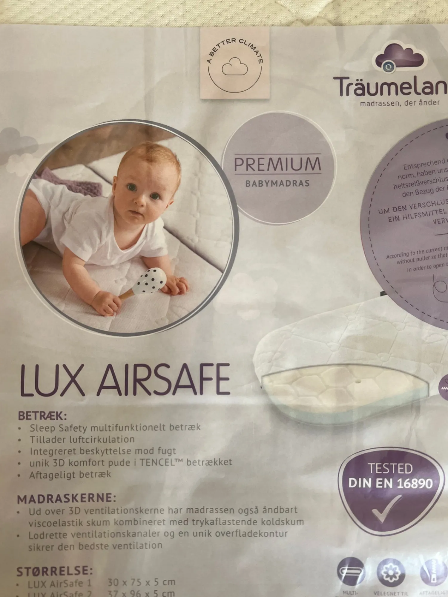 Madras fra Träumeland i serien Lux airsafe 30×75 cm, i lift størrelse.
