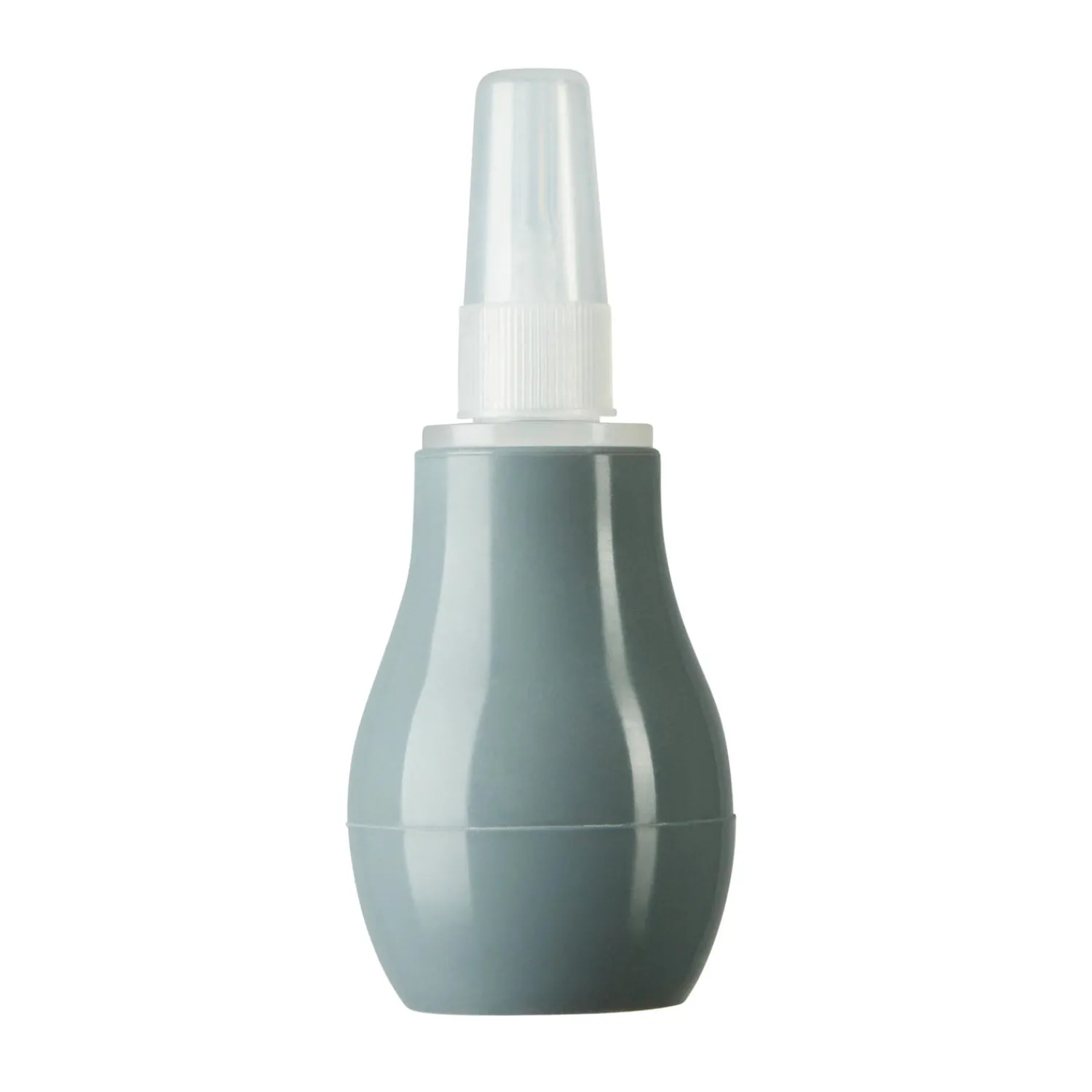 Med næsesugerens bløde spids kan du fjerne slim fra babyens næse. Tryk først på silikonepumpen. Indsæt derefter den tynde stilk i babyens næse og slip pumpen.