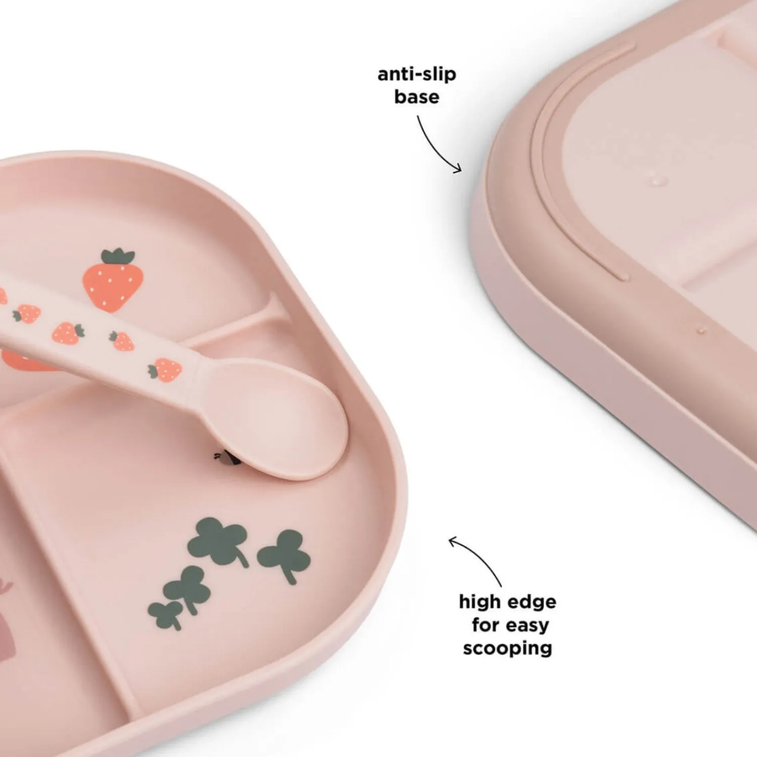 Med en praktisk antiskrid-base forbliver tallerkenen på plads under måltidet, og dens kompakte størrelse sikrer nem opbevaring. Lad dit barn udforske smagsoplevelserne på en sjov og spændende måde med denne praktiske tallerken.