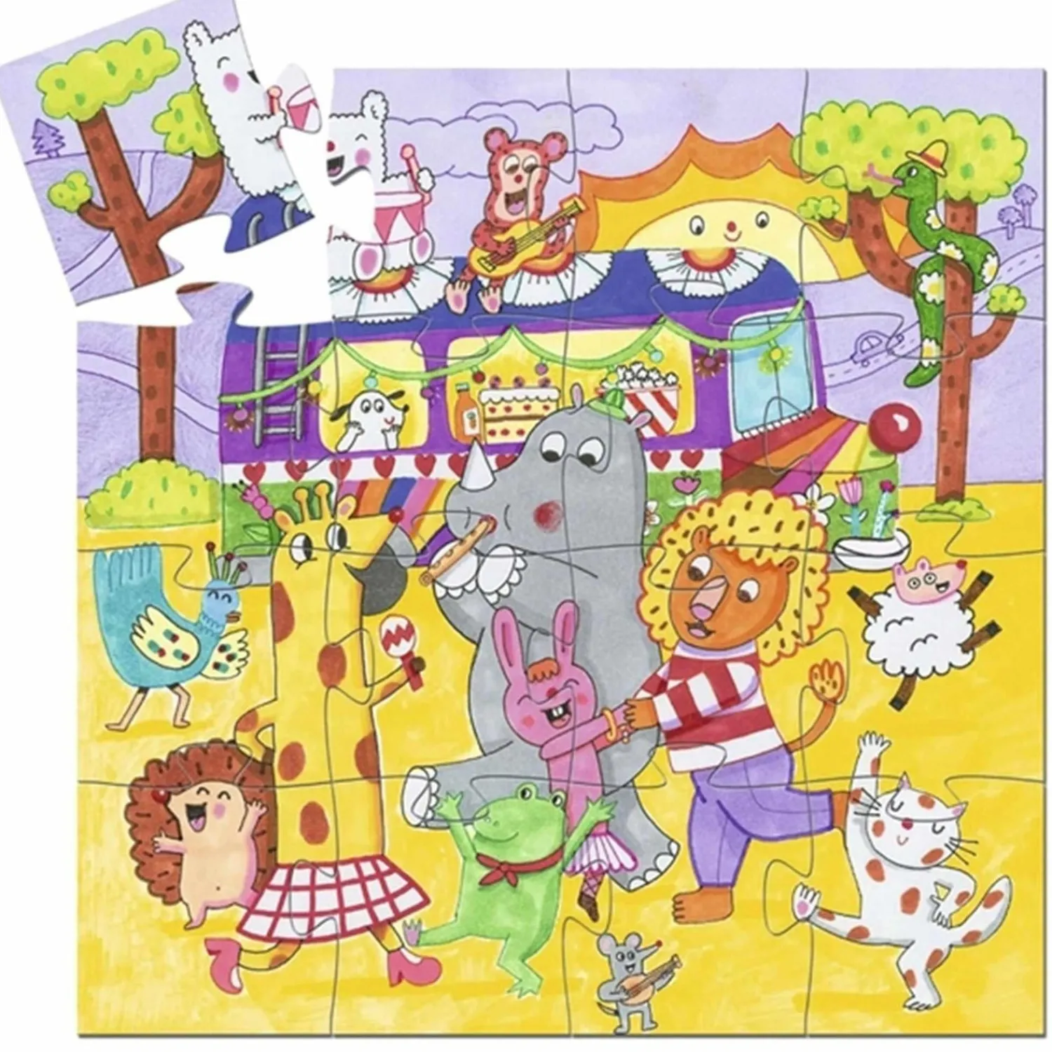 Med 16 robuste brikker er dette puslespil velegnet til børn fra 3 år og op. Lad dine små eventyrere udforske farver og former, mens de samler brikkerne og skaber et smukt billede af regnbuebussen.