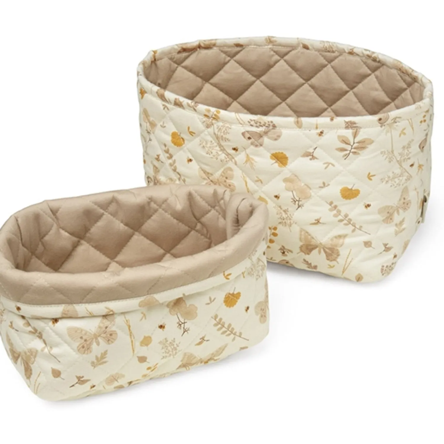 Organisering bliver legende let med Cam Cam Copenhagen Quiltet Opbevaringskurv 2-pak Butterflies. Disse skønne opbevaringskurve er ideelle til puslebordet, børneværelset eller badeværelset. Lavet af 100% økologisk bomuld med en smuk quiltning, tilføjer de en touch af elegance til ethvert rum. Den indvendige linning er trykt med Cam Cam’s signatur “Butterflies” print, hvilket giver kurvene et sødt og charmerende udtryk. Du kan nemt folde kanten ned for at fremhæve det skønne print.