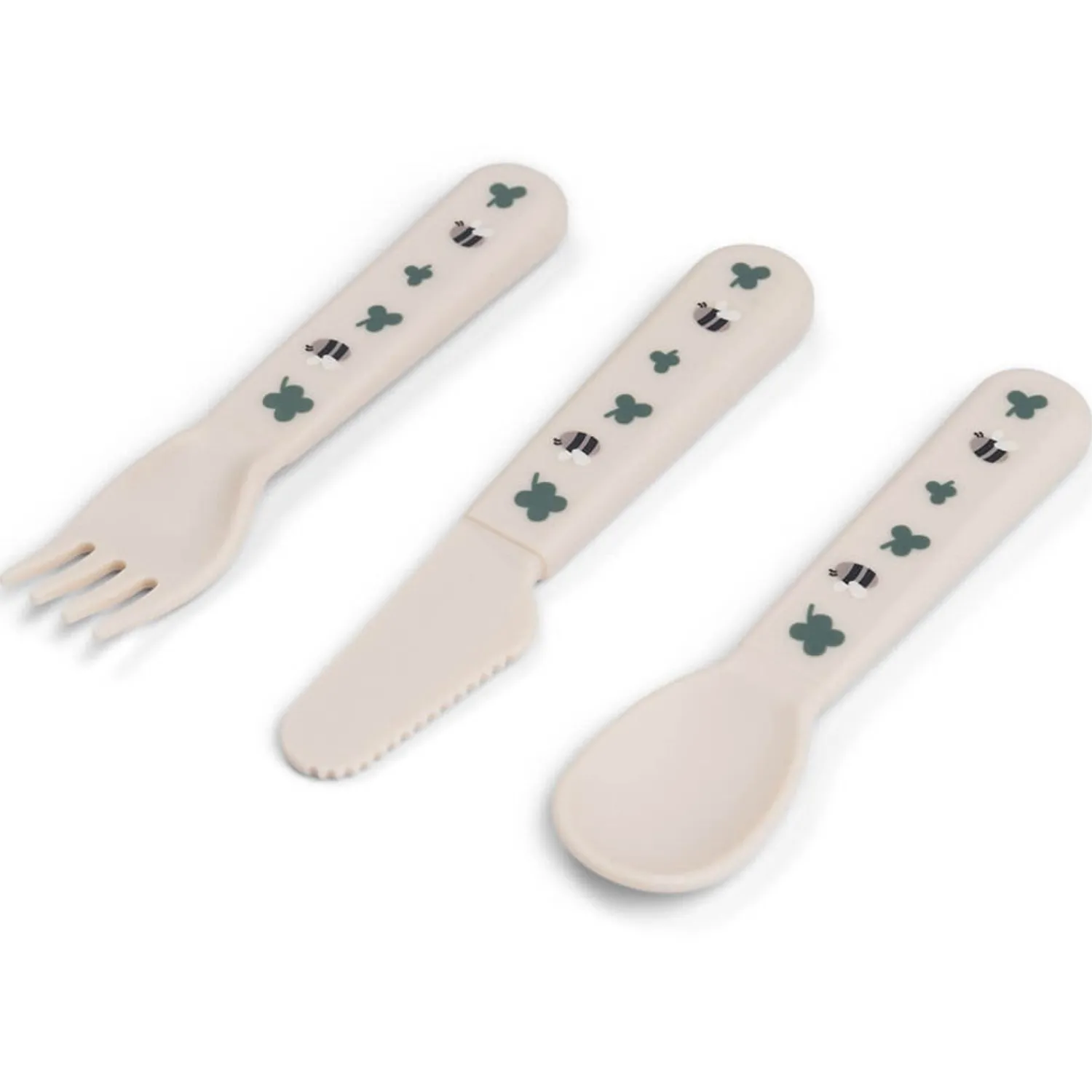 Produktet er lavet af 100% fødevaregodkendt PP og måler 12 x 2 x 1 cm. Velegnet til børn fra 0 år og opefter. Bestik og skeer er designet med bløde, afrundede kanter for ekstra sikkerhed. De er fremstillet af BPA-frit materiale og kan både bruges i mikrobølgeovn og vaskes i opvaskemaskinen. Den fine sandfarve med kløvermotiv giver en charmerende touch til måltidstiden.
