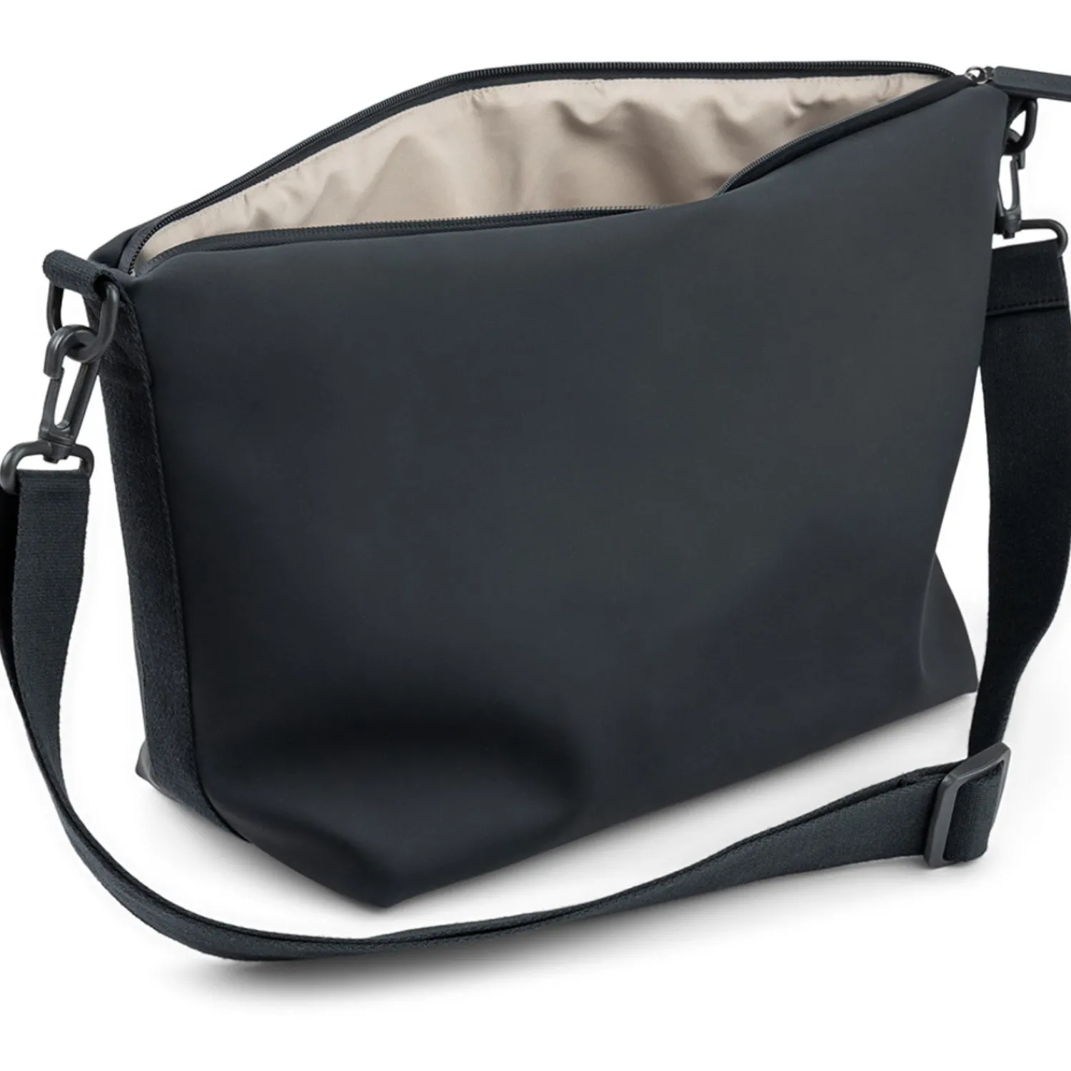 Tasken er designet med en fleksibel, bred skulderrem for komfort, og dens vandafvisende overflade sikrer, at alt forbliver tørt og sikkert, uanset vejret. En ideel følgesvend til det moderne forælderliv.
