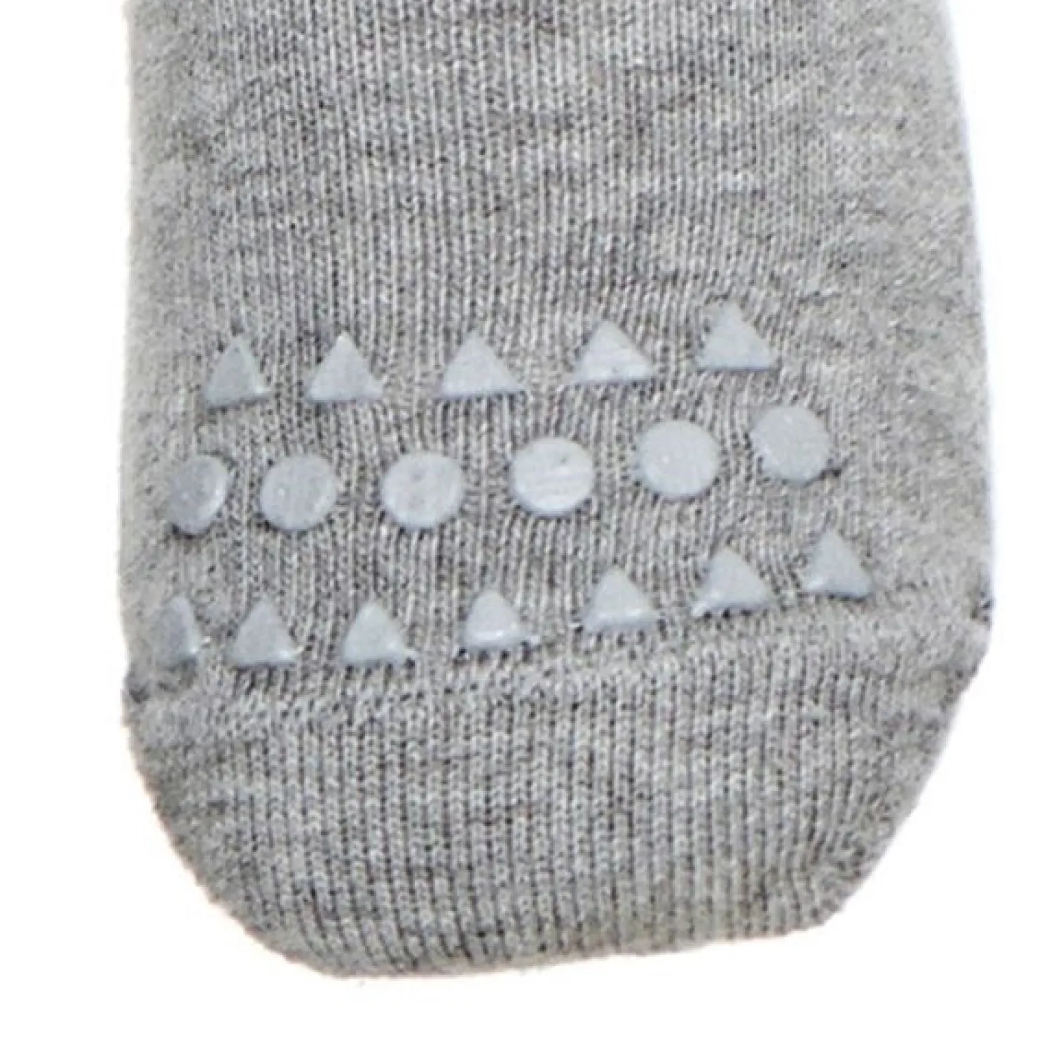 Forkæl dit barns fødder med GObabyGO skridsikre strømper i Grey Melange. Lavet af en blød og åndbar blanding af 80% bomuld, 17% polyamid og 3% elastan, sikrer disse behagelige strømper en god pasform og komfort. De unikt designet med skridsikre silikonegummipuder under fødderne og på tæerne, hjælper dit barn med at bevæge sig sikkert og uden at glide, når det lærer at kravle og gå.