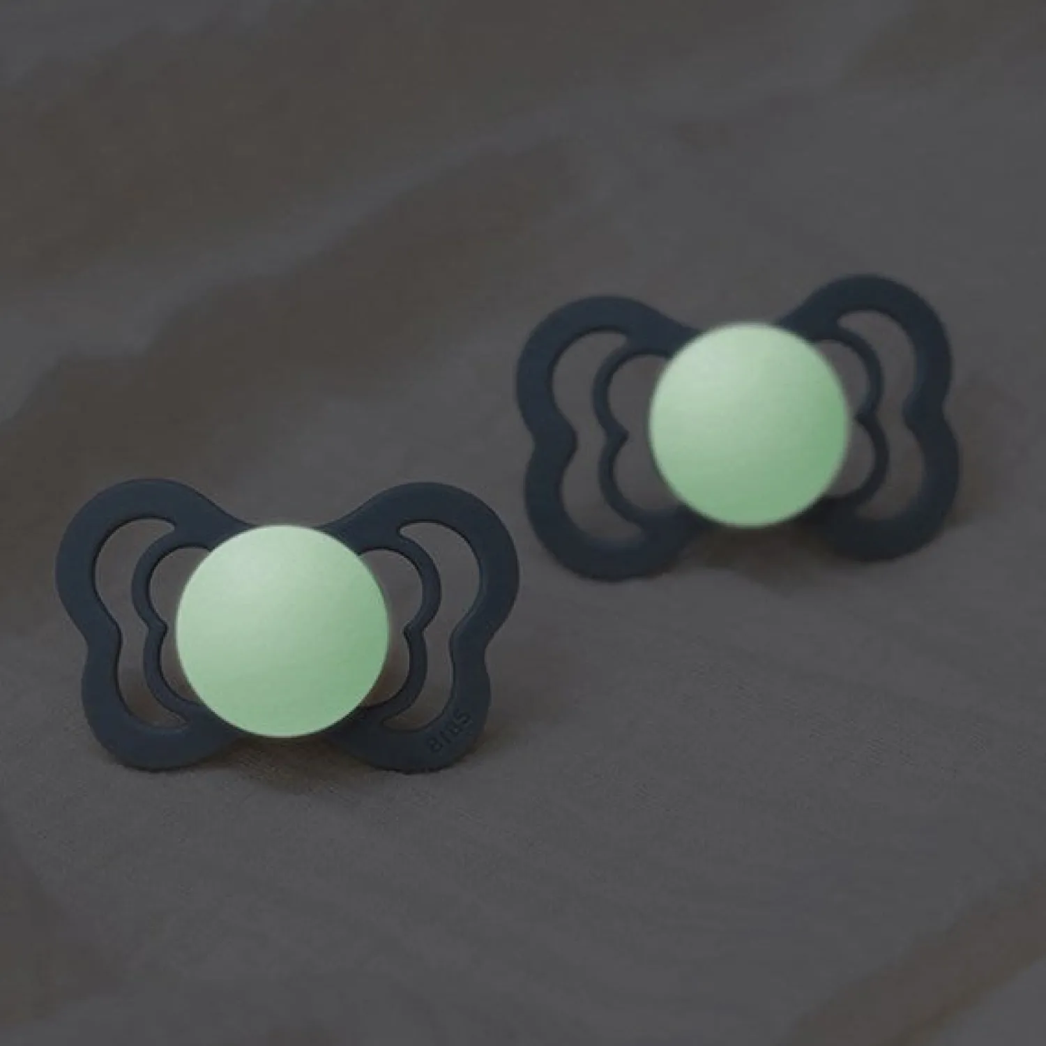 Opdag Bibs Supreme Silikone Sutter Glow 2-pak i farverne Sage og Cloud – den perfekte kombination af stil og funktion. Disse sutter er designet med barnets komfort og udvikling for øje, hvilket hjælper med at reducere trykket på tandstillingen og støtte en korrekt kæbeudvikling. De store huller i skjoldet sikrer optimal luftcirkulation omkring barnets mund, samtidig med at den sensitive hud beskyttes.