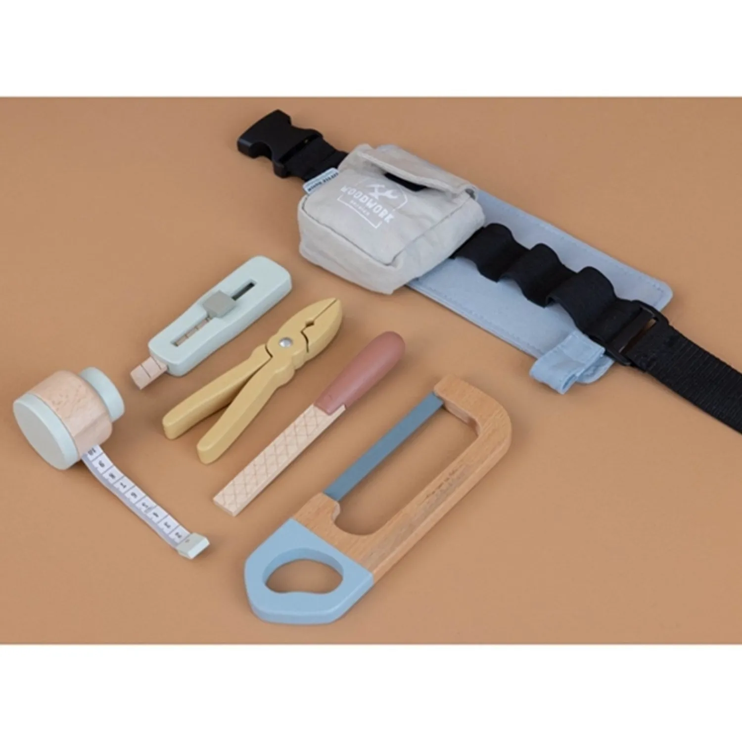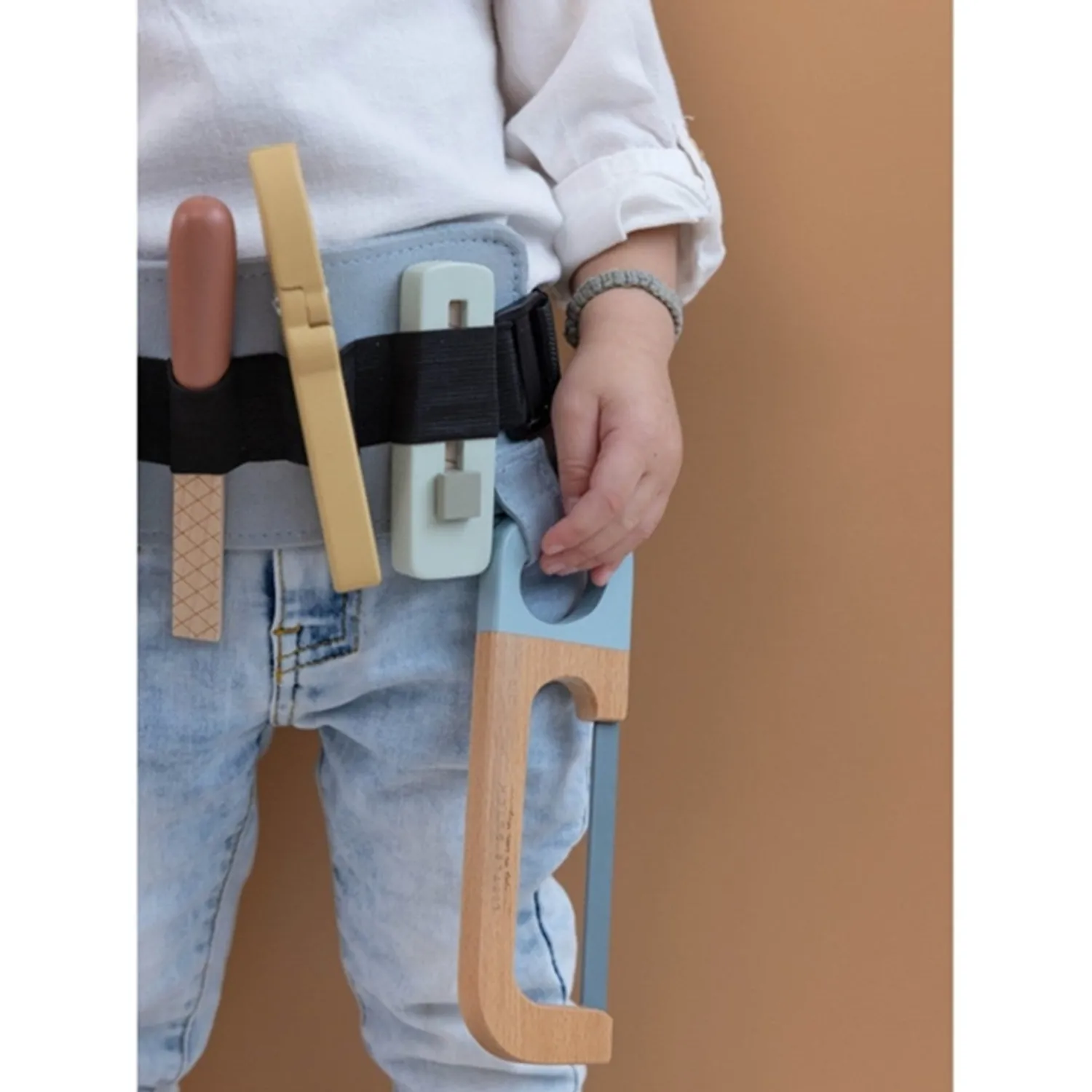 Det stilfulde værktøjsbælte er fremstillet af holdbart træ og har dimensioner på 28 x 16 x 8 cm, hvilket gør det ideelt til børn fra 3 år og opefter. Lad dem udforske og udvikle deres færdigheder, mens de leger og lærer med dette skønne legeværktøj.